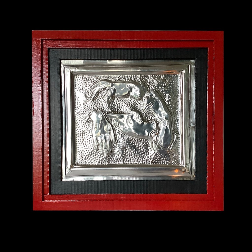 Illuminations is a series of projects, that are connected through use of aluminium sheets ; and the allegory of illumination and reflection. The idea of using aluminium as the medium for these works originated from a project to make a Riza (metal coverings) for a religious icon painting . During my research I came across Milagros, a custom amongst some Mexican Catholics of attaching small metal charms to altars or shrines. These charms were shaped to resemble various body parts, animals even inanimate objects like a house or car. They serve as a tangible reminder of a petitioners particular need.